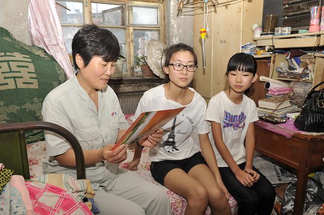 .集團(tuán)黨委副書記孫淑君(左一)讀著孩子的錄取通知書。楊秀清今年高考的大女兒李鑫( ...