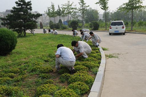 會后,一場黨員帶頭、員工共同參與的集體除草活動熱火朝天地開展起來。大家有的用手拔、用的用鐮刀割、有的用袋裝、用的用車推,忙的不亦樂乎??煺邘椭撸贻p者幫助年長者,大家一邊勞動,一邊互相問候,其樂融融。表面的雜草連根拔起,死角區(qū)域進(jìn)行了二次清除。烈日炎炎下,盡管很多人的臉上流下了晶瑩的汗滴,但他們依然在繼續(xù),沒有停歇。功夫不負(fù)有心人,經(jīng)過2個(gè)小時(shí)的辛勤勞動,責(zé)任區(qū)域內(nèi)的雜草、雜物被徹底清除。當(dāng)大家回望整潔有序的草坪時(shí),心中無比喜悅。